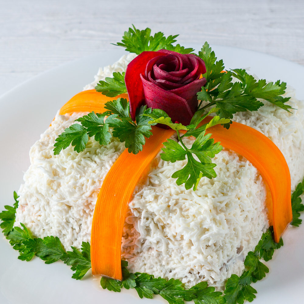 Салат (от лат. Salata - солёное) - это холодное кулинарное блюдо, состоящие из различных овощей (традиционные из них: салат листовой, зелень, картофель, грибы, огурцы и т.д.), заправленных маслом, майонезом, уксусом и различными салатными заправками. Как разновидность, встречается множество кулинарных рецептов сладких салатов — приготовленных с использованием фруктов или мороженного. Часто,