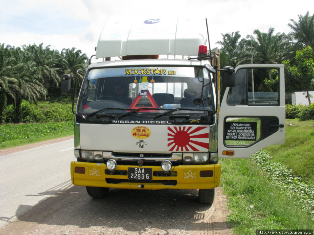 Этот день у меня получился автостопный. Сперва я, конечно, выбрался за город на автобусе – Сандакан очень уж раскидан, больше чем на десять километров, хотя и не так плотно заселен, как например соседняя филиппинская Замбоанга... Тут город во многом расчитан на людей с машинами или с мотоциклами хотя бы, вот и расстояния велики. Итак, стоя за развикой, я довольно быстро отловил пустой грузовик, едущий в КК – столицу штата.