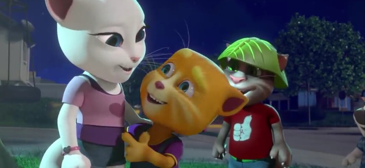 Что ещё? Можно предположить, что мать Джинджера унаследовала характер Анджелы из Talking Friends. Вспомните: Та Анджела явно была богатой, в каком-то случае даже стервочкой, которая могла себе многое позволить. А также носила точь в точь такой же фиолетовый шарф, который теперь носит рыжая кошка. Значит, мама мальчика — дань уважения к переродившейся франшизе, что очень радует. А ещё и мужчине, и женщине на вид 40-45 лет, поэтому получается, мальчика мама родила где-то между 33-37-ю годами. Значит теперь мы реально про семью Джинджи знаем больше, нежели, к примеру, про родителей Тома. Кстати, про Тома.