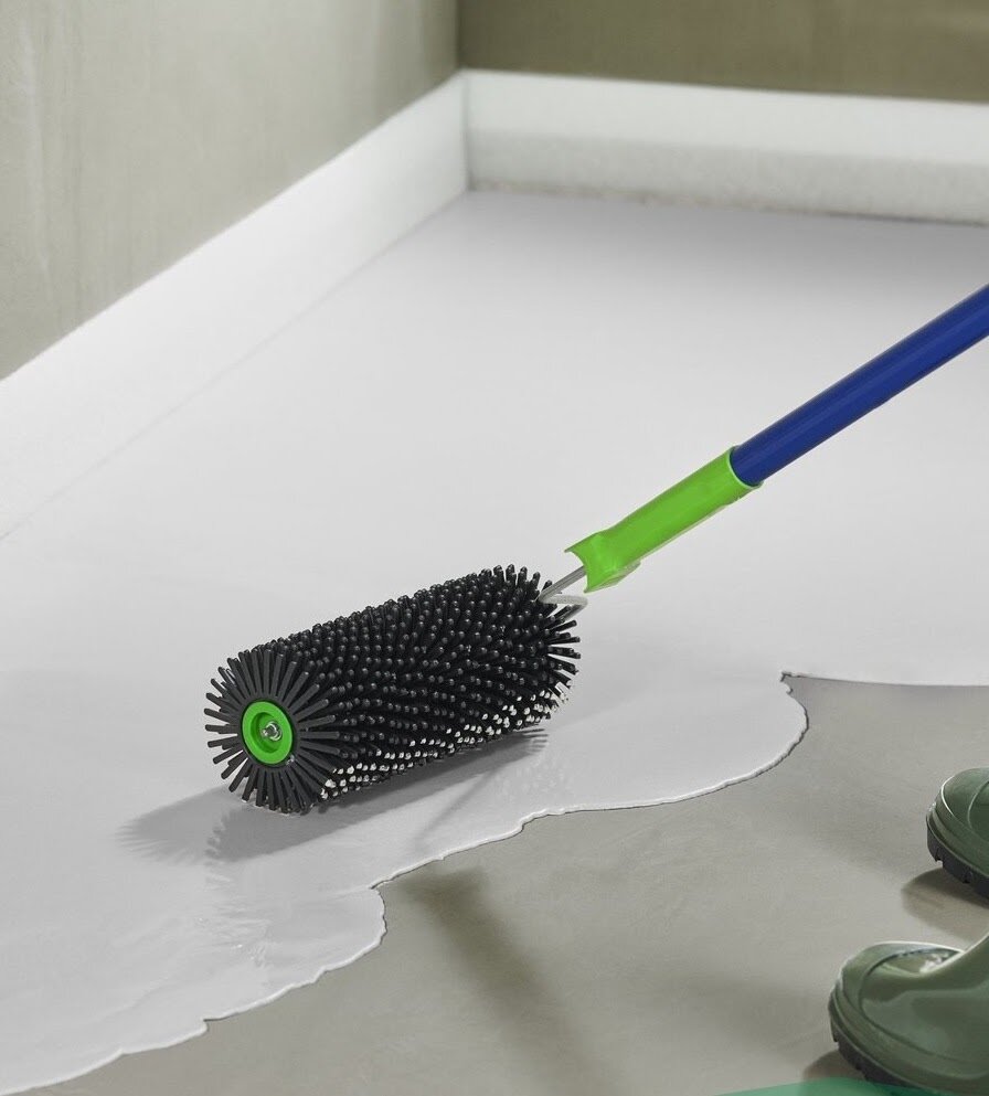 Чтобы приступить к работе, вам понадобятся игольчатый валик, строительный миксер и емкость для размешивания раствора.