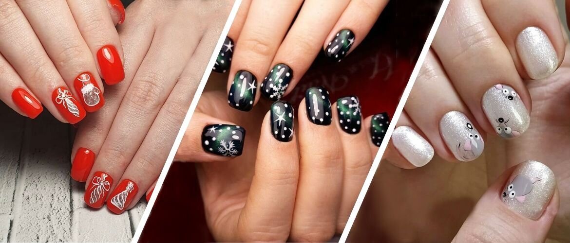 Варианты новогоднего маникюра на очень короткие ногти 2021
