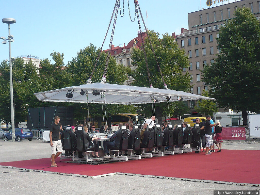 Dinner in the Sky («Ужин в небе») рассчитан на 22 человека, которых обслуживают лучшие финские и зарубежные повара. Закрепленный на платформе огромный стол поднимается в небо подъемным краном, однако посетители могут не тревожиться за свою