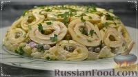 Продукты (на 8 порций)Картофель отварной – 300 гГорошек зеленый консервированный – 200 гМясо копченое – 150 гМайонез – 150 гЯйца – 4 шт.Лук репчатый – 50-60 гМука – 1 ст. л.Масло растительное – 1 ст. л.Петрушка – 5 веточекСода – 1 щепотка