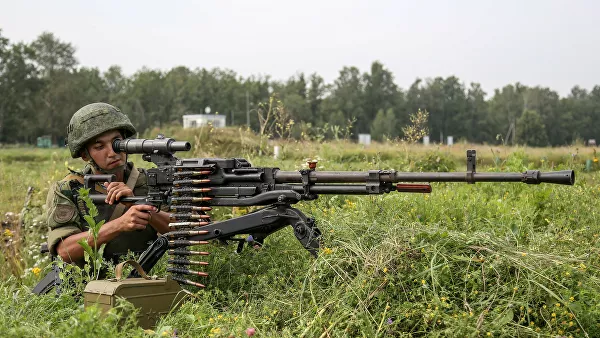 Морской пехотинец стреляет из пулемета ДШК