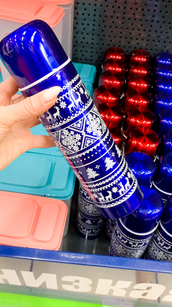Термос в скандинавской тематике, представлен в снием и крсном цвете, цена 199 р. Рисунки ярике, смотрится термос супер, хорошая идея для подарка.