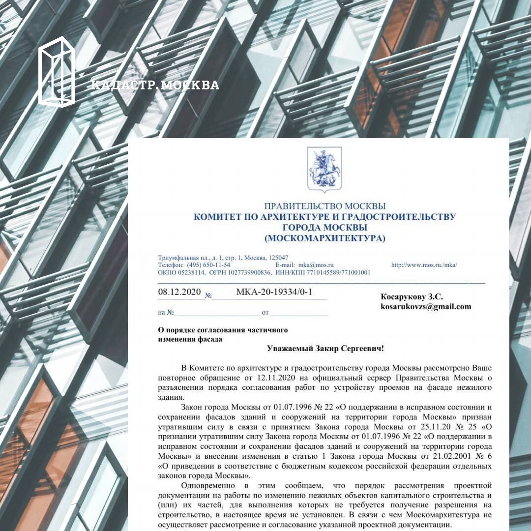 Однако, уже в течение нескольких лет Москомархитектура не согласовывает изменение фасадов, ссылаясь на отсутствие регламента. Очередное письмо по этому поводу получено нами 10.11.2020.