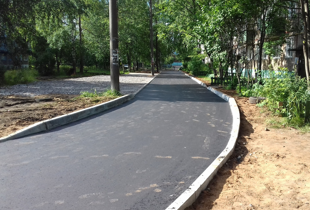 Подрядчик начал работы в мае 2017 года, в июле проект уже был завершён. В результате жильцы получили ровную дорогу и парковку на 10 машиномест.
