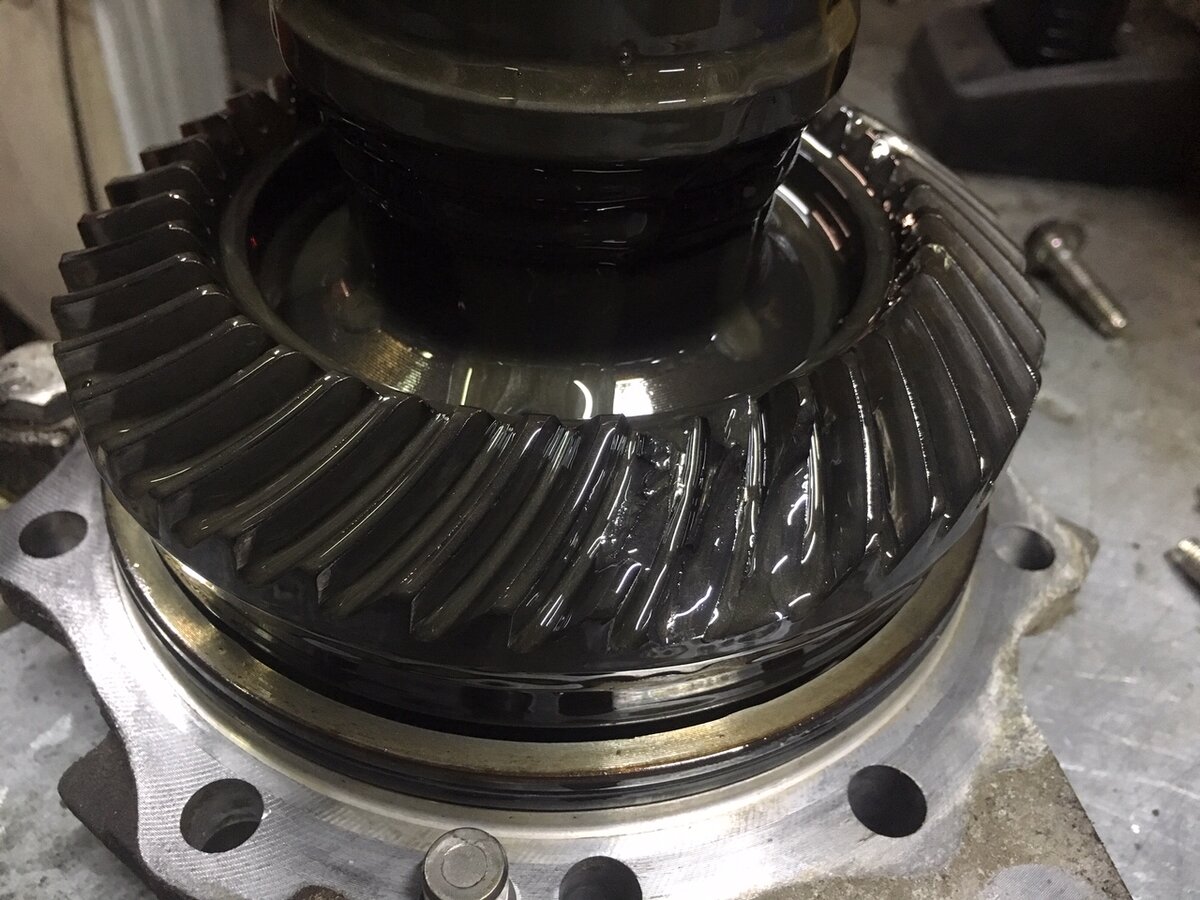 При полном разборе и дефектовке обнаружили выработку в посадочных местах подшипников, соответственно нарушилось пятно контакта, из-за чего начало грызть пару и в конечном итоге срезало зубья.