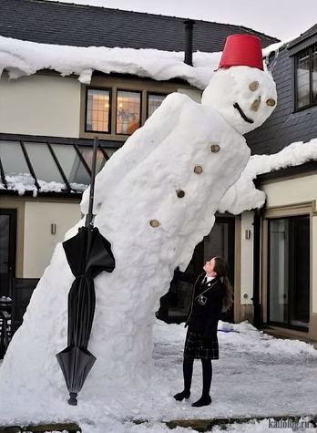 А вот такого снеговика гиганта сделали строители.