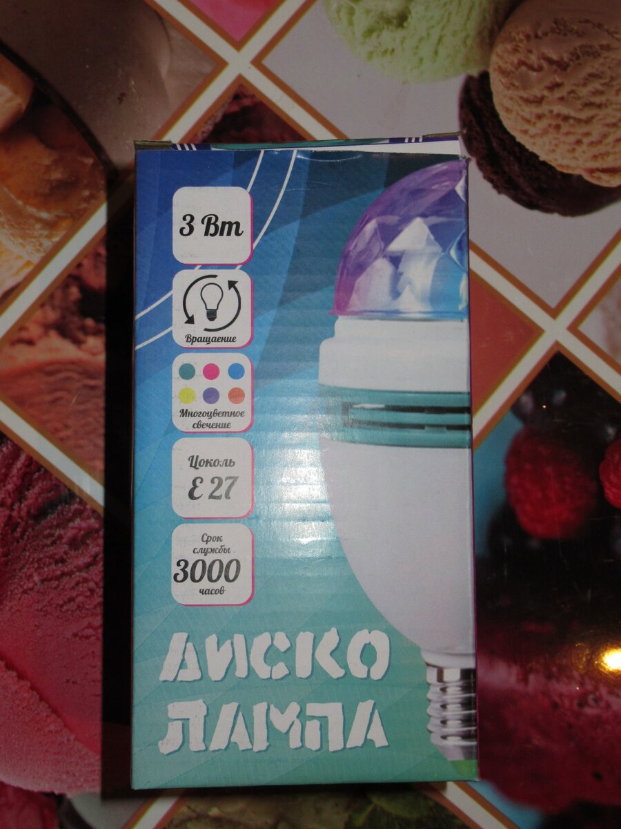 Сегодня хочу показать Вам так называемую диско-лампу, которую приобрел по случаю в "Светофоре". Стоила она всего 103 рубля. За эти деньги даже не раздумывал брать или нет. Если хоть чуть чуть светит и то хорошо. Куда нибудь приспособлю))) Вот так выглядит упаковка.