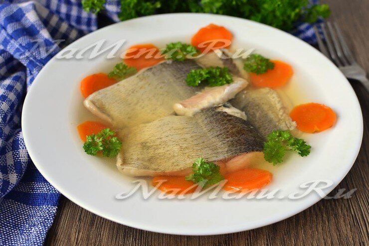 🌱Куски рыбы раскладываем по тарелкам и заливаем бульоном. Украшаем зеленью и кусочками морковки
