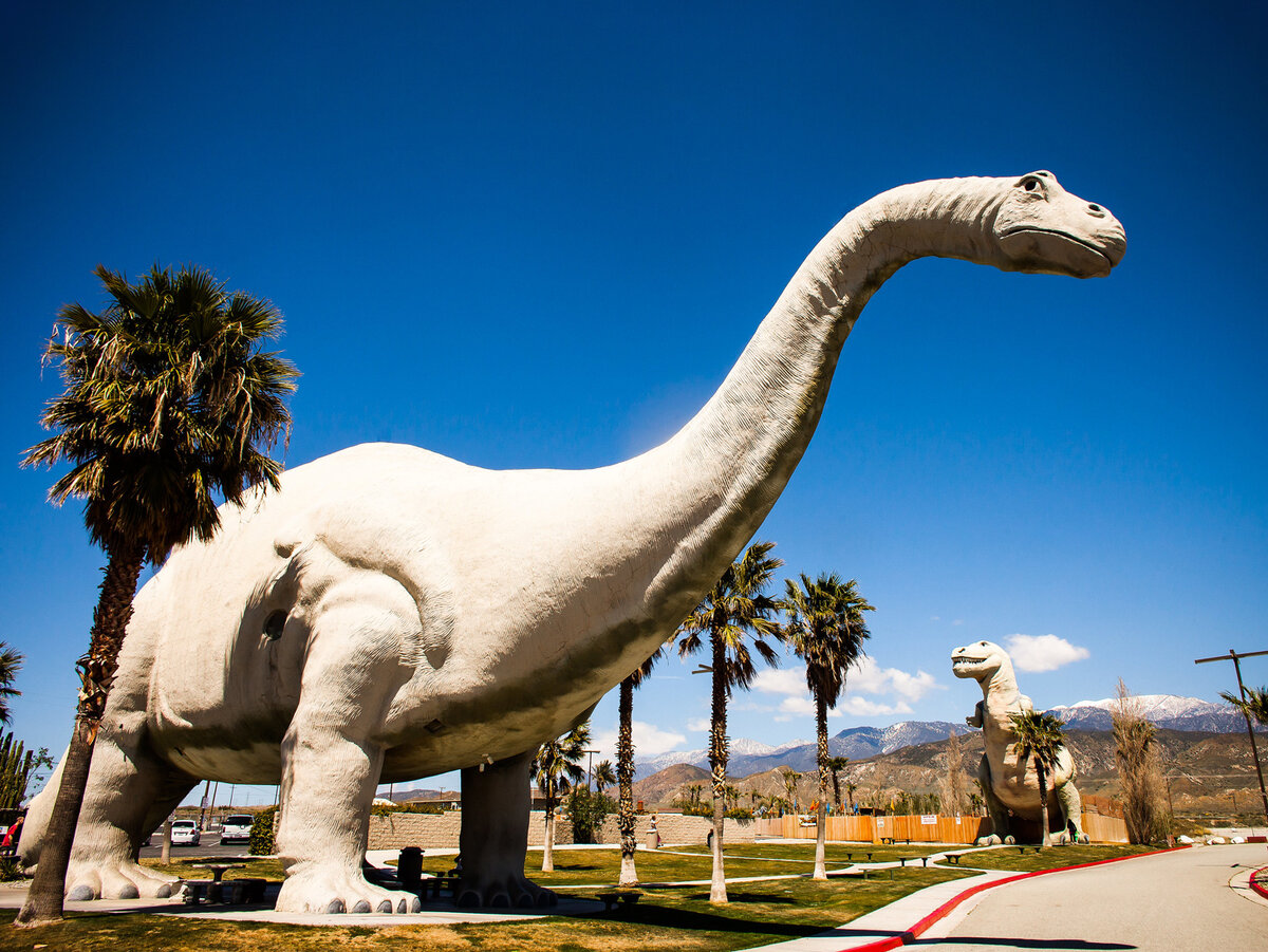 Придорожные достопримечательности — странные инсталляции и постройки вдоль обочин шоссе и проселочных дорог — характерная культурная особенность США. Как и в случае с пиццей и хот-догами, в каждом регионе страны они различаются. На Среднем Западе чаще всего можно встретить Поля Баньяна, у побережья Мексиканского залива — гигантских акул, в южных штатах — огромные кресла-качалки. Но в каком бы уголке страны вы ни оказались, вам, скорее всего, попадутся динозавры. Откуда они там взялись? Мы перевели материал Thrillist об этом феномене.