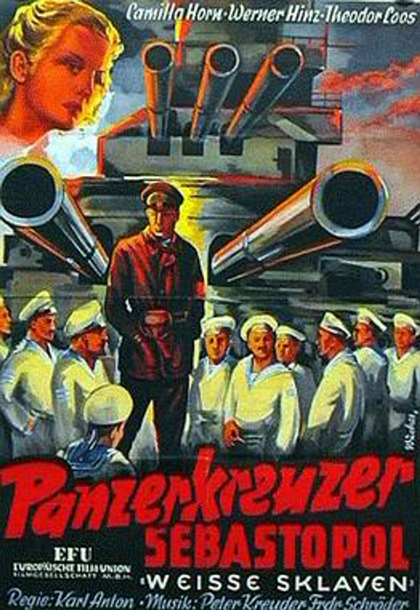 В этом отношении интересен фильм Карла Антона (1898-1979) под красноречивым названием «Броненосец «Севастополь» - Белые рабы» (1937), в котором отчетливо использован блестяще созданный Сергеем Эйзенштейном миф о восставшем «Броненосце «Потемкине» (1925).