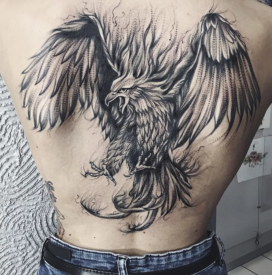 Стоит учесть и то, будет ли изображена вся птица, или же только ее часть. Так голова орла – символизирует собой мудрость и дальнозоркость. Если изображены на теле голова и крылья орла – это символическое изображение Феникса, птицы, возрождающейся из пепла.