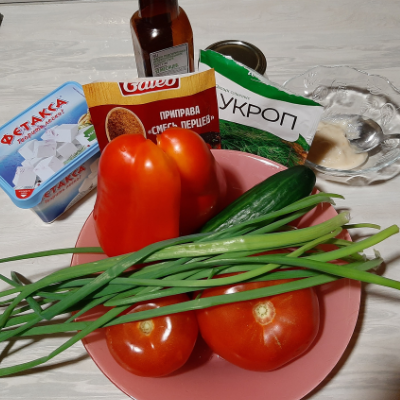 1. Порезать кубиками огурец, болгарский перец и сыр