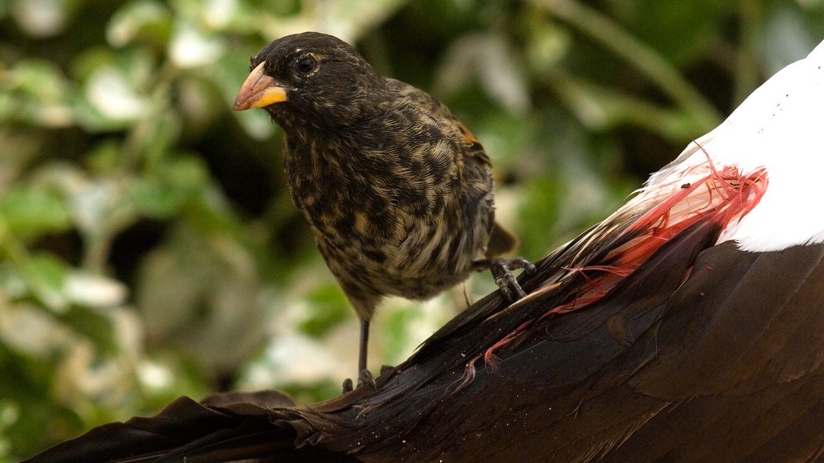 Единственной птицей-вампиром является Остроклювый земляной вьюрок, который обитает исключительно на галапагосских островах Дарвин и Вольф. В основном они питаются зернами и кровью таких птиц, как: Олуш и Голубоногая. Считается что эти птицы питаются кровью из-за того что, они выклевывали паразитов у других животных.
