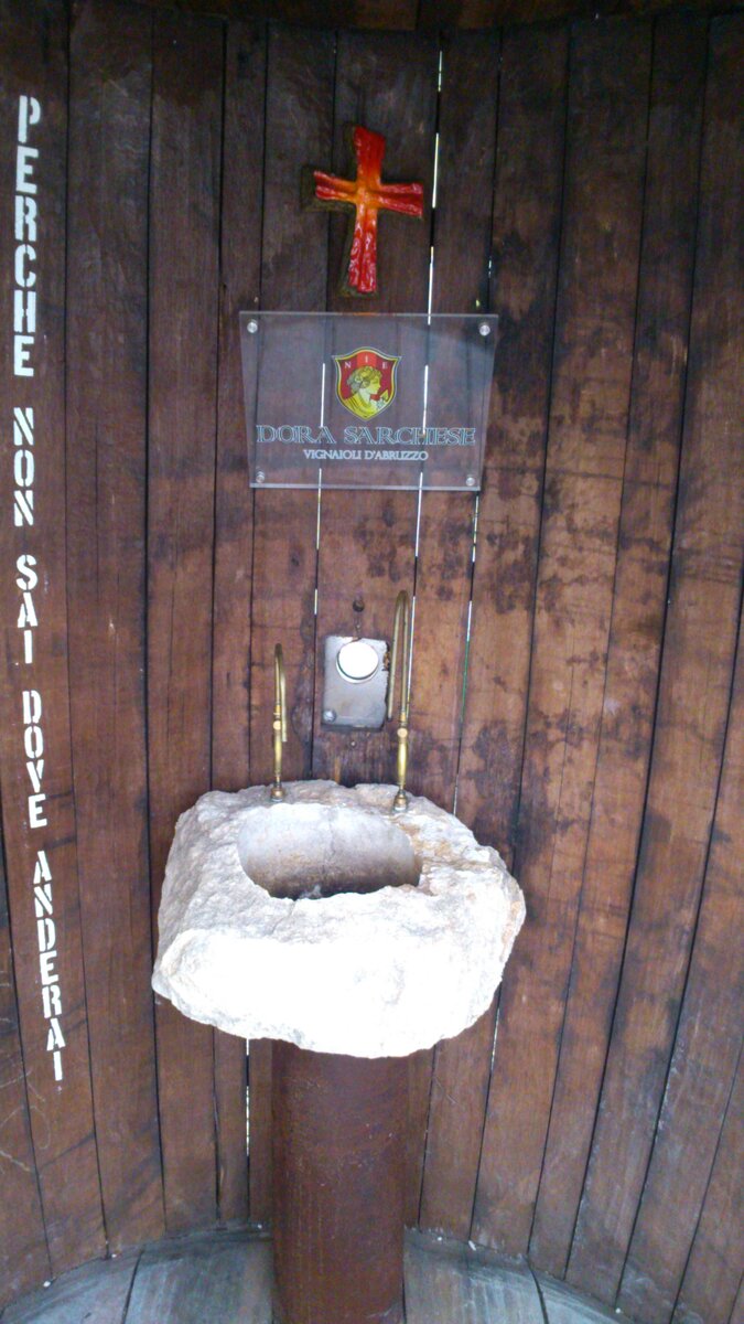 Про винный фонтан в итальянском регионе Абруццо мы узнали заранее до поездки и даже распечатали его фотографию А4 (как оказалось не зря, так как потнавигатору не так просто его найти, а показали фото местным, они посмеялись, но дорогу показали)))))