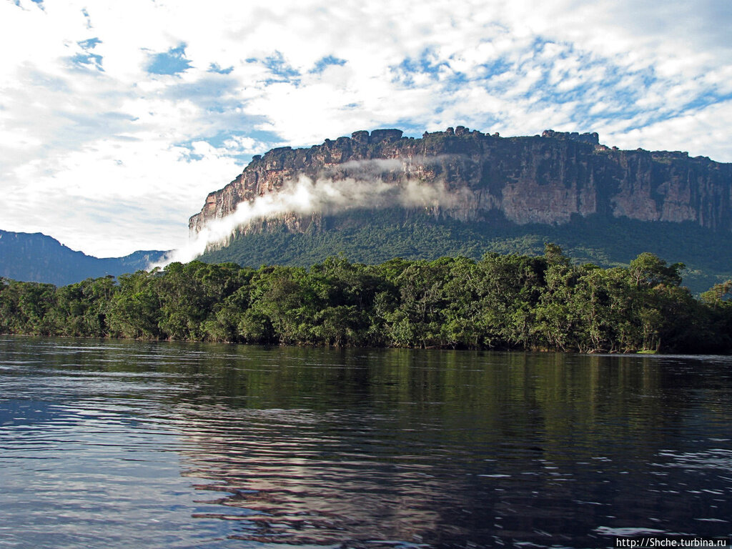 Находясь в лесу — леса не видно, находясь на горе — не видно самой горы. Самые лучшие виды на тепуи открылись нам с поверхности реки. Я могу это утверждать точно, ведь днем ранее мы совершили полет на самолете к водопаду Анхель, который падает с вершины одной из тепуи — Ауянтепуи Осмотр водопада Анхель и гор нац. парка Канайма с самолета. С самолета виды, конечно, грандиозные. Но ощутить всю красоту и величие удалось только с реки Кереп, по которой мы несколько часов шли на моторах к подножию Анхеля. Берега реки буйствовали непроходимимы джунглями, а над высокими лесами за каждым поворотом открывались виды на величественные тепуи, одна другой краше