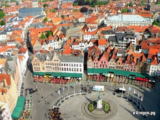 Рыночная площадь в Брюгге занимает большое пространство перед 83-метровой башней Белфорт и окружена старинными зданиями с развевающимися средневековыми знаменами. В те далекие времена Гранд Плас с торговыми рядами была свидетелем всех значимых событий, происходящих в процветающем Брюгге.