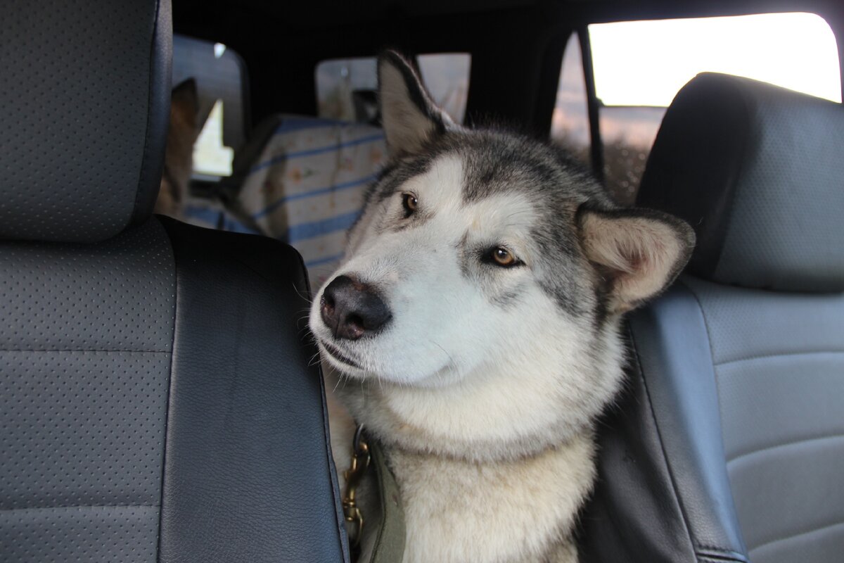 Дорога была чудесная, собаки устали, но боялись пропустить красоту за окном, поэтому ехала я вот в таком "комфорте":