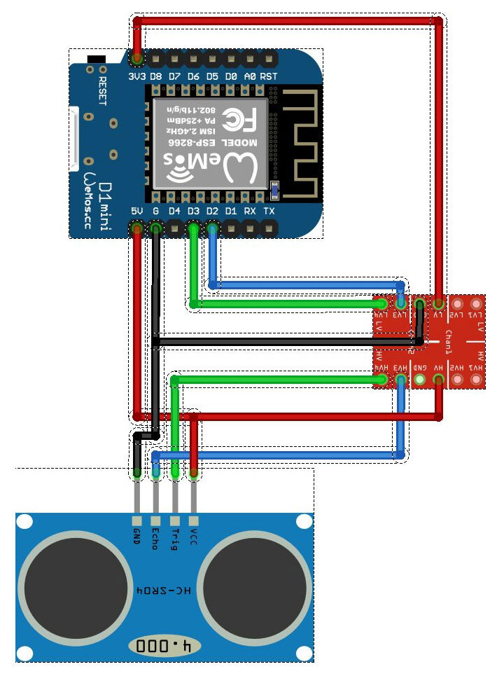 Очень часто появляется необходимость отобразить что-либо на веб-странице с вашего устройства ESP. Есть несколько способов сделать это. В этом уроке мы покажем самый простой способ для передачи данных от ESP микроконтроллера на веб-страницу от HC-SR04. Описание Потребуется 10 минут вашего времени, чтобы вывести ваши измерения на веб-страницу. В уроке использовался проект remoteMe.org. Также была использована версия WEMOS D1 pro, но это будет также работать для других типов ESP. Данные будут собираться от ультразвукового датчика расстояния, а результаты измерений будут отображаться на веб-сайте. Мы будем использовать механизм переменных. Целочисленная переменная будет установлена ESP и эта же переменная будет отображаться на сайте в виде датчика. Мы можем отобразить страницу на веб-сайте, открытом в мобильном браузере, отсканировав QR-код. Схема соединения Соединяем всё следующим образом: Добавление переменных Вам необходимо зарегистрироваться на https://app.remoteme.org на странице рег