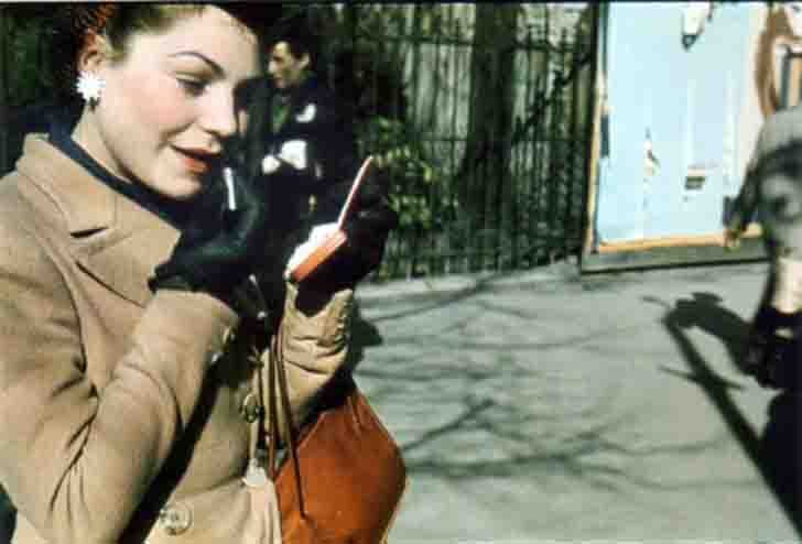 Color photograph of the Second World War by the famous French photographer. Hot young womenin the Nazi-occupied Paris brings lipstick on the waterfront of the capital of France.