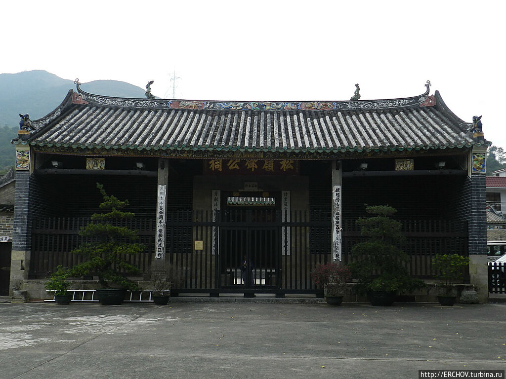 Гонконг+Макао+Гонконг. Ч-15. Храм Фанлинг и их нравы Выходим из храма и движемся дальше по маршруту. За городом Фанлинг возле Горы прыгающего дракона находится около десяти старых китайских деревушек, огороженных крепостной стеной. Одна из крепостей хорошо сохранилась, а рядом с ней находится дом китайского мандарина, превращённый в музей — именно туда мы и направляемся. Путеводитель утверждал, что добраться от станции метро можно на автобусе №14, но мы остановку так и не нашли, поэтому взяли такси. Водитель долго рассматривал брошюрку, затем ещё дольше кружил нас по каким-то деревням. Место отыскали с трудом, и здесь нас ждало разочарование. Дом мандарина это частная собственность, где живут его потомки. Для посещения дом-музей открывается в какие-то определённые дни и часы. Рядом старый отреставрированный храм за ним деревушка-крепость. Молитвенный дом наполнен тенями предков. Прихожан нет, но палочки благовоний дымят, словно боги-генералы втихаря чиркают зажигалкой. Местность усеяна невысокими домами, с крохотными приусадебными участками. Чуть в отдалении возвышается покрытая зелёным кустарником Гора прыгающего дракона. Серые стены деревушки-крепости уцелели благодаря отделению от Китая, ибо во времена культурной революции подобные пережитки прошлого частенько уничтожались. Дух времени здесь реально чувствуется. Возле входа в крепость раскидистое дерево, под ним камни, на которых в прежние годы сидели уважаемые старики. Вход внутрь через башню, сразу за ней глубокий действующий колодец. В толстых стенах вырезаны бойницы, возле стен лавки, на которых вечером собираются старушки, но сейчас никого. Самое удивительное – за крепостной стеной жилые дома, разные по архитектуре, но зато стоящие чётко на своём родовом месте. Такие форты жители родовых общин строили в Южном Китае в первую очередь для защиты от пиратов, из века в век совершавших здесь опустошительные рейды. Жена ругается, отговаривает, но любопытство толкает меня пройтись внутри пустой крепости-деревни, вдоль низкорослых домиков, похожих скорее на сараюшки, в которые на выходные дни приезжают дачники. Двери везде закрыты, но в одном домике старик китаец, увидев меня, приветственно машет рукой. Я отвечаю, и, пользуясь моментом, стараюсь рассмотреть интерьер его квартиры, которая вовсе не производит вид жилого помещения. Метраж жилища не более 8 метров. Внутри маленький диван, холодильник, алтарь для предков и какие-то коробки, коробки, коробки…. Старик улыбается, предлагает зайти, но фотографироваться отказывается. Наверно выросший здесь сын (или дочь) уехал на заработки в Гонконг, и дедушка, дабы как-то жить, таскает на себе домой и из дома все эти коробки. Если предки не всегда помогают живым, то живые живым ещё реже.