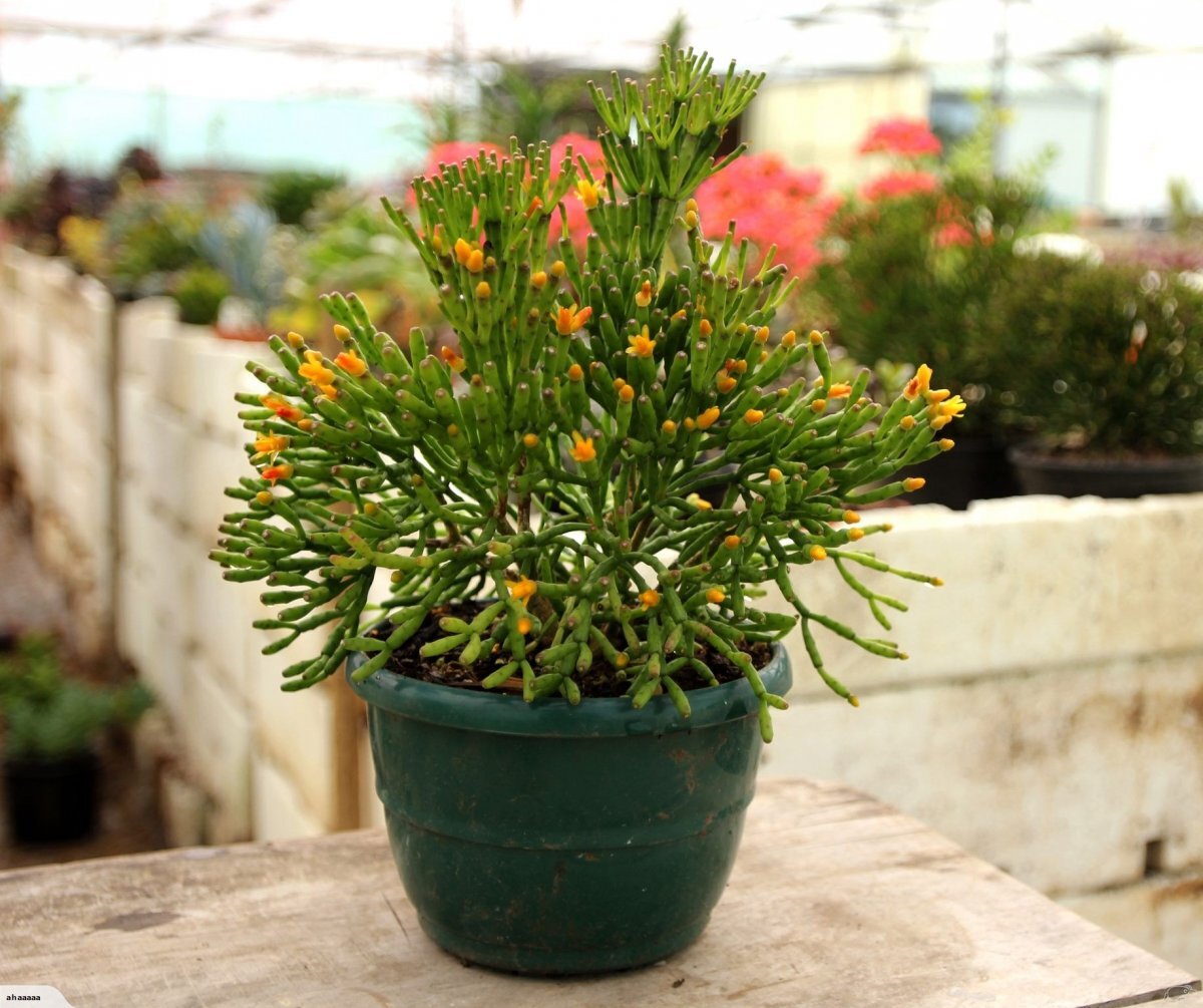 Хатиора – это разновидность кактуса, который пришел к нам из Бразилии. Оригинальный внешний вид и отсутствие колючек сделали его популярным жителем наших подоконников. Уход за хатиорой несложный: достаточно не допускать переувлажнения субстрата. Легко размножается черенкованием. Цветение наступает в конце зимы, и по поверью дарить можно только цветущее растение – подарок хатиоры без соцветий считается несущим негативную энергетику.