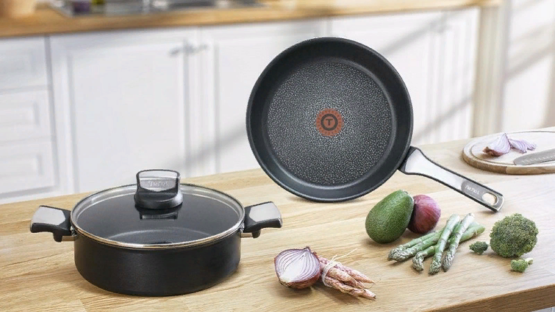 Это самая известная французская фирма, которая представила на мировой рынок посуду не только с классическим покрытием тефлоном, но и с такими покрытиям, как Titanium Excellence, Power Glide, Prometal Pro, Titanium Pro. Вся продукция от этого бренда характеризуется устойчивость к температурным перепадам и ударам. Кроме этого, на сковородах Tefal можно готовить блюда без использования масел и жира. Изделия с антипригарным покрытием отлично моются и служат долгий срок. К плюсам изделий от данного бренда относят также наличие температурной индикации, обеспечение равномерного прогревания продуктов, к минусам – на моделях с глянцевым покрытием краска быстро выгорает.
