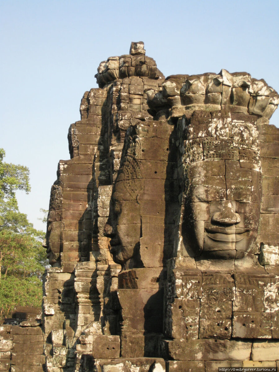 Это центр центра. Храм Байон — загадка Ангкора. Многие люди, остававшиеся тут на несколько часов, говорили о странных состояниях, которые испытывали. Назначение храма до сих пор не известно, также как и то чье лицо изображено на башнях. Кто-то верит что это одна из реинкарнаций Будды в образе Авалокитешвары – Будды Милосердия, кто-то ассоциирует лицо с Джаяварманом VII, первым буддистским правителем Кхмерской империи, до той поры исповедовавшей индуизм, который и построил Байон в начале ХIII века. Внутри храм такой же странный, как и снаружи – великое количество расположенных на разных уровнях комнат, много узких лестниц ведущих и вверх и вниз.. ни одной протяженной галереи или прямого прохода – все время вы видите впереди только ближайшую комнату. Храм Байон не был ни царской резиденцией, ни залом собраний… больше всего он напоминает лабиринт. Лишь правитель и особо приближенные монахи могли заходить в него. Сегодня он открыт для всех, группы туристов отважно исследуют темные переходы и крутые башни, да изредка можно увидеть монаха в оранжевом одеянии пришедшего из близлежащего монастыря, чтобы медитировать в этом месте…