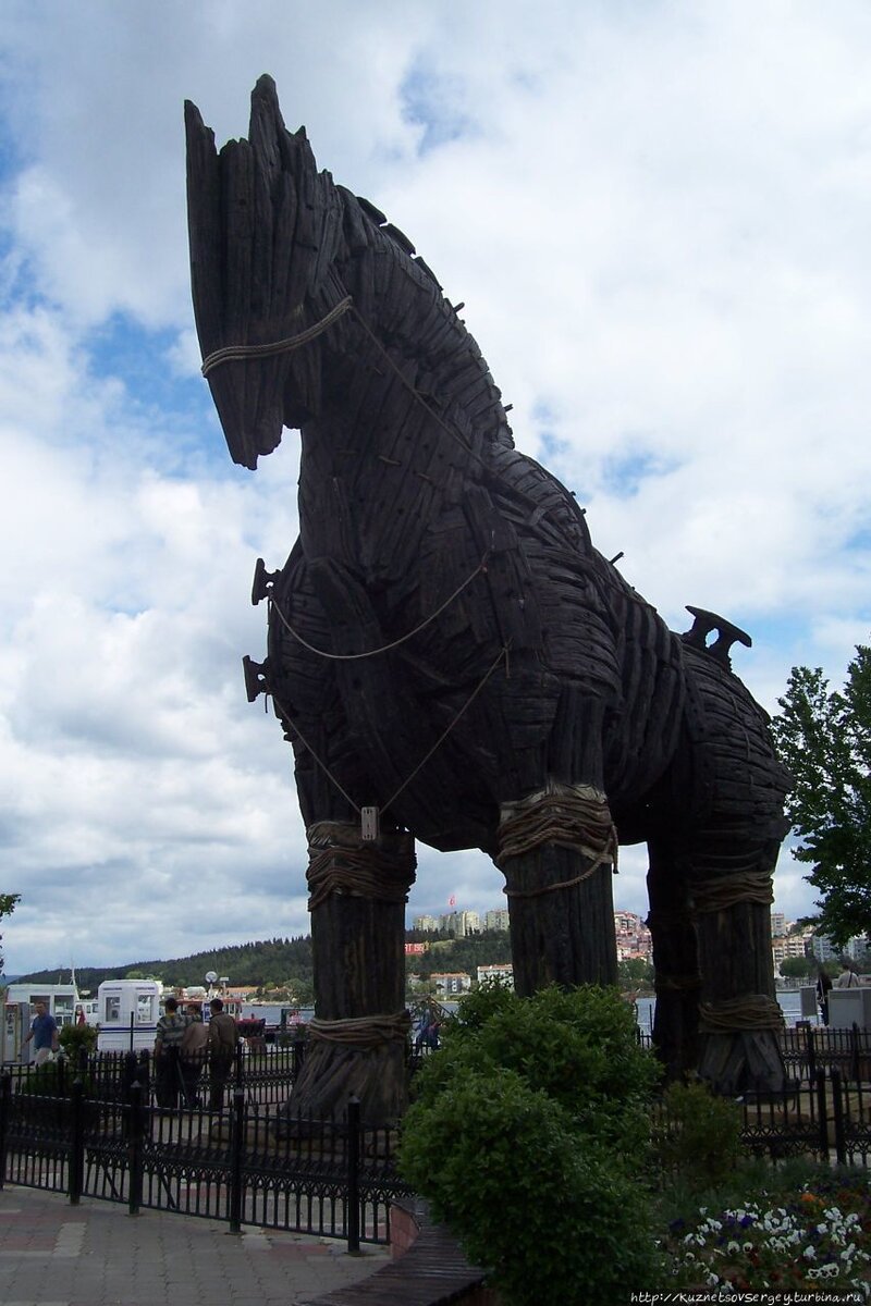 Полутора часов вполне хватило для Трои. В 11.00 мы выехали в направлении Чанаккале. 50 километров – один час в пути, и в полдень мы были на берегу Дарданелл. Этот пункт нашего маршрута был для меня тоже ключевым! Раз уж Босфор, то и Дарданеллы! В Чанаккале удобный и скоротечный паром. В ожидании отправки мы немного погуляли по азиатскому берегу, полюбовались еще одним Троянским конем. Хотя он тоже далеко не такой, как мы его себе представляем, но, все же, не такой уродливый как в Трое.Наш автобус заехал на паром, четверть часа в плавании и вот мы уже снова в Европе!