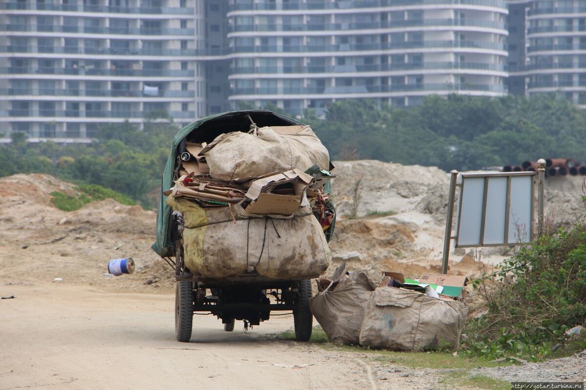 На Хайнане считается, что район полуострова Shenzhou Peninsula находится на границе тропического и субтропического климатического пояса. Однажды, в январе нам довелось проехать на машине с юга острова (Санья) на север (Хайкоу). В машину мы сели в шортах, майках, чем вызвали, по прибытии в отель города Хайкоу, немое удивление. Жители северной административной столицы острова ходили в пуховиках, ботинках, сапогах.Всего 215 километров по прямой, и такая климатическая разница.Ещё дома, найдя на карте полуостров Пенинсула, я чётко поняла, что ждать палящего солнца, ласкового моря не придётся. Как никак зима у них. Шесть дней надо было чем-то себя занять. Для людей с фотокамерой и удочкой, это не проблема.И пока муж раздавал автографы местным жителям, позируя на камеры с выловленными рыбинами, я изучала окрестности. Как-то так случается, что дорога меня затягивает. Я из тех, кто не умеет поворачивать.Вот и в этот раз, решив чуточку прогуляться, я ушлёпала на добрый десяток километров от отеля.Мне всё казалось, что вот за тем поворотом обязательно откроется какой-то сумасшедший вид на море.Вместо этого дорога увела меня вглубь острова, в абсолютно неосвоенные, лесистые местности, где не то что туристы, но и местные жители, если и появлялись, то на стройках, и изредка, в проносящихся автомобилях и мотоциклах. Странная блондинка, пешком, в пляжных сланцах, в ярко-красном балахоне, с камерой наперевес, смотрелась, по меньшей мере, дико. Ведь поблизости не было никаких отелей. Откуда она взялась? И куда путь держит?Это смахивало на безумие. Google Maps не загружался. Маршрут я не прорабатывала. Да и намерений упереться так далеко тоже не было. Просто влекла дорога и нужна была точка, момент, событие, что-то, что могло остановить и заставить повернуть назад.Обычно про такие места говорят, что смотреть здесь нечего. Отличный асфальт, велосипедная дорожка, пустыри, стройки, гольф-клубы, элитные посёлки, рыбацкие деревни, запруды по выращиванию рыбы, свалки, мусор и новостройки.Через пару лет здесь будет город-сад. И это правда. Как часто мы убеждались в этом за четверть века знакомства с Китаем.Точкой возврата стала река. Как я понимаю, я дошла до района Peninsula. Впереди виднелись современные здания, которые я приняла за отель, но увы, это оказался жилой комплекс, с закрытой охраняемой территорией.Стало понятно, что надо возвращаться. Разочарованная, я вышла на мост, и обомлела. То, что я увидела, обескуражило. Вся река была покрыта плавучими фермами. На них стояли дома, копошились люди, перебирали снасти, что-то разгружали, загружали. Словом, здесь кипела какая-то неведомая мне жизнь.Это открытие стало кульминацией моей авантюры. Вот то, что влекло меня, и почему я не могла остановиться. Удовлетворившись увиденным, я повернула назад. И вот тут я почувствовала усталость.Ноги просто горели. Едва ступая, скрипя сердцем, и проклиная своё тупое упрямство, я плелась обратно. Слева от меня, посреди грязи, разрухи, убогости и нищеты, в грязнущей луже, выхаживала цапля, чинно и статно. Господи, как же похожи мы были с этой глупой птицей! Нас обоих занесло в “срань господню”, причём, по доброй воле.Мне казалось, что дорога никогда не кончится, когда рядом затормозил мотоциклист и предложил подвести. Пожалуй, муки сомнения слишком хорошо читались на моём лице. Он достал камеру из своего рюкзачк