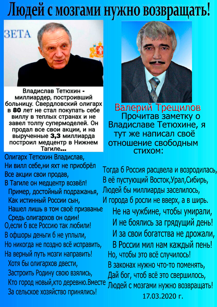 В.Трещилов "Людей с мозгами нужно возвращать!" (Стихотворение)