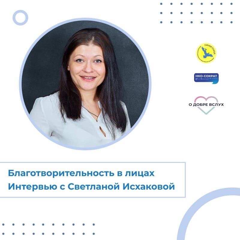 Мы продолжаем нашу рубрику #ДоброВЛицах_ОДВ, и спешим познакомить вас ещё с одним профессионалом своего дела в сфере благотворительности – Светланой Исхаковой.