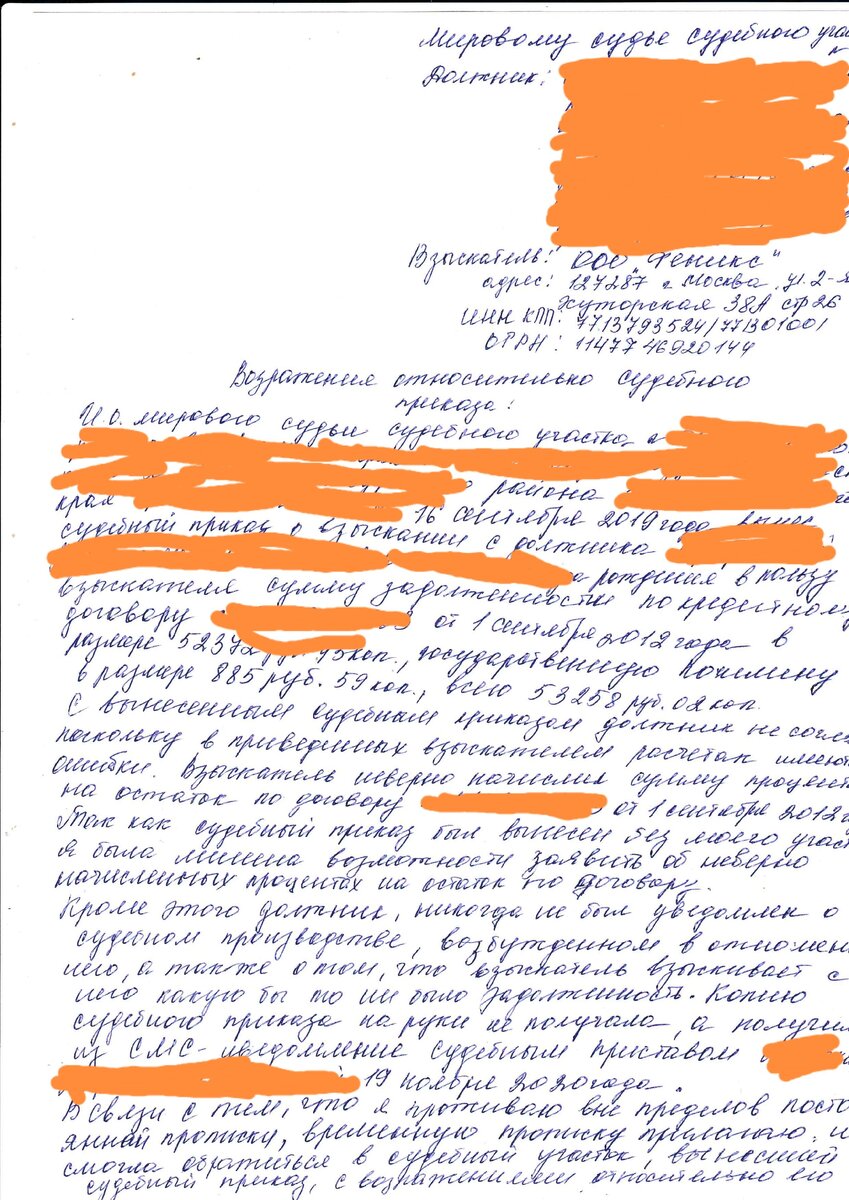 Опять сажусь за стол и пишу ходатайство о возобновлении пропущенных сроков, о том, что суд прошёл без меня, что я не могла защитить свои права. Прилагаю документы с временной регистрацией на момент вынесения судебного приказа. То есть доказательства того, что письмо с судебным приказом я получить не могла, так как я проживала по месту временной регистрации.