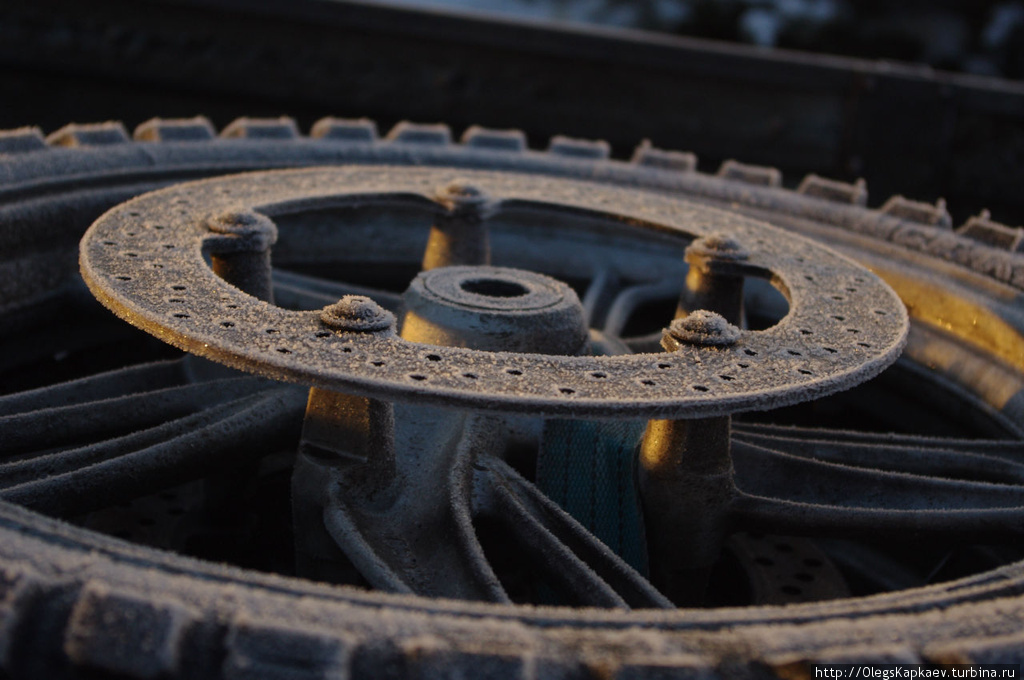 Нас встречают парни из Дорожных акул (местный мотоклуб).Мотоциклы загоняются в гараж, где окружающий воздух пытаются нагреть с помощью бензиновой тепловой пушки. При температуре, близкой к -30 это довольно сомнительное мероприятие, поэтому с грустью думаю об утренних попытках запуска.Но уже готова баня, распарены веники и мы мчимся располагаться в мотель перед погружением в сибирское гостеприимство. Парни помогают варить и чинить поврежденное мото в своей мастерской.