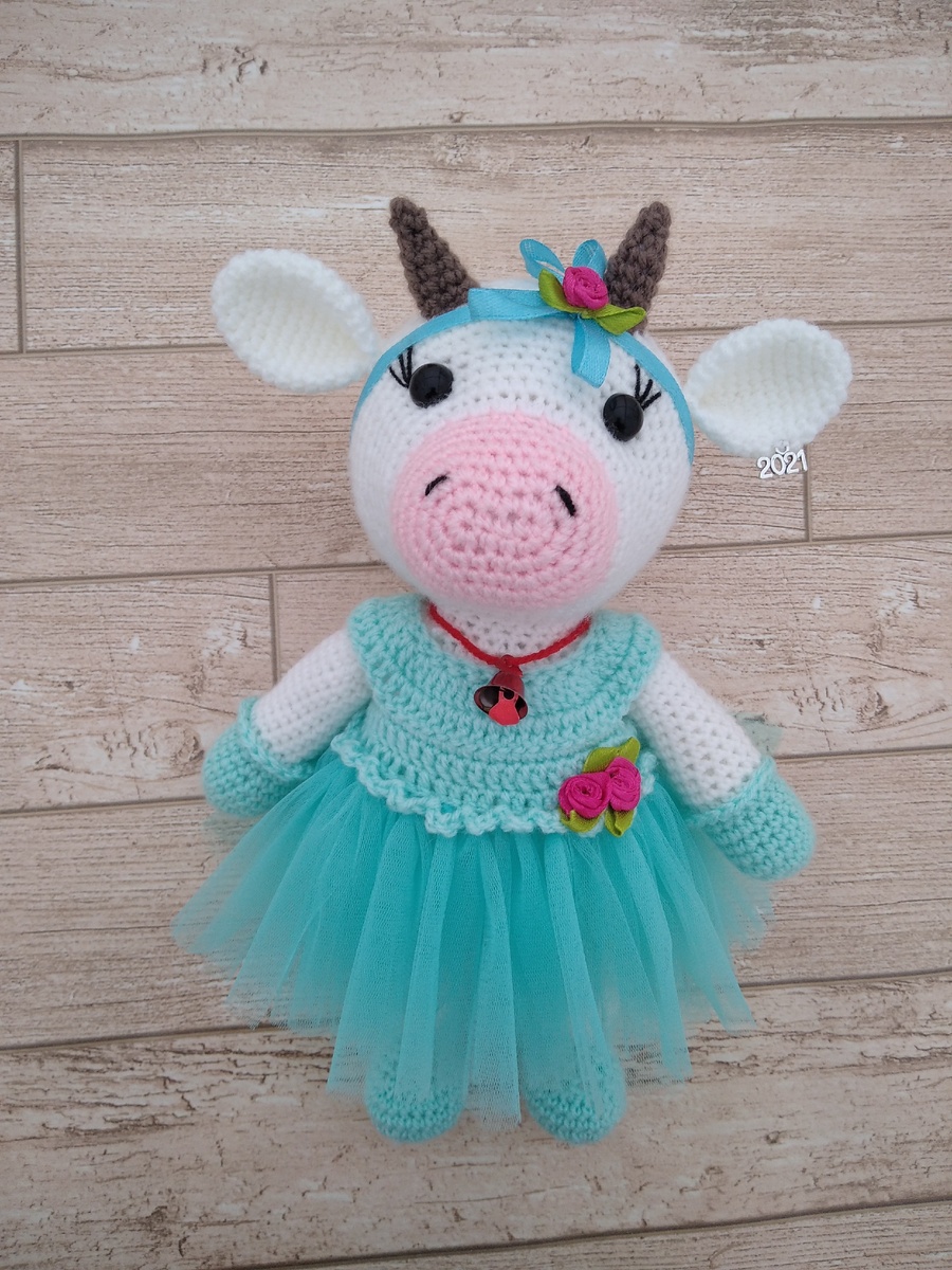 Коровка связана из полухлопка из разных мк, а платье вообще эксперимент. Думаю получилось неплохо.