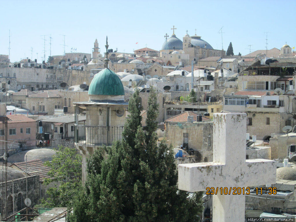 Мы гуляли по Via Dolorosa — улице, по которой, как считается, прошел свой последний путь Иисус Христос и наблюдали за процессией, "несшей свой крест". Мы пили потрясающий, обжигающе горячий, крепкий кофе в арабском квартале. Мы поднялись на крышу бывшего австрийского хосписа и оттуда осматривали город. Мы спустились в подземную тюрьму, в которой по преданию содержался разбойник Варавва. Мы веселились вместе с мальчишками в черных и белых одеждах, наблюдая за их игрой в еврейском квартале. Мы любовались уникальной керамикой, расписанной вручную, в мастерских армянского квартала и необыкновенным резным убранством стен армянских церквей. Мы наслаждались неторопливой прогулкой по городу. А Ольга рассказывала и рассказывала... Мы все внимали ей, затаив дыхание…Прониклись безграничным уважением к таким молоденьким, но уже умеющим держать оружие, девочкам, сопровождающим экскурсию израильских школьников.Удивились безносой скульптуре царя Давида, которую установили уже после нашего прошлого посещения Иерусалима. Точнее, когда скульптуру, подаренную российским скульптором, к счастью не Церетели, установили, нос она имела. Но в иудаизме, как и в исламе, запрещено изображать людей и животных, и над бедным царем Иудейским чего только не вытворяли – и краской его обливали, и нос отламывали. И каждый раз его отмывали, нос обратно возвращали, и начиналось все сначала. В конце концов, после очередного отломанного носа, ремонтировать скульптуру перестали, и царя оставили в покое. Ведь в таком виде он больше не изображение человека, а просто абстракция.Пожалели несчастную тряпичную куклу, которую каким-то неведомым способом занесло на провода, где она, бедняжка, повисла, грустно свесив головку. Кто же тебя так, милая?...Послушали музыкантов. Сначала в пределах стен Старого города,а затем и вне их.А неожиданное для себя открытие я сделала по дороге в этот город. В этот раз мы отправились туда поездом. Господа! Очень рекомендую! Удивительно красивые виды из окна!