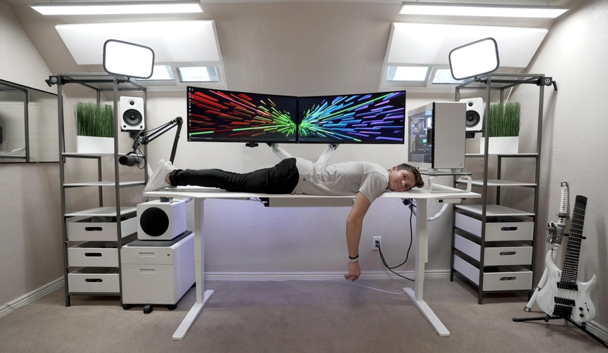 - Эргономичные аксессуары. Это могут быть магнитно-маркерные доски, держатели для проводов, встроенные розетки и светильники — да что угодно. Это «расхламит» стол. А порядок на столе — порядок в голове и, как следствие, в игре.