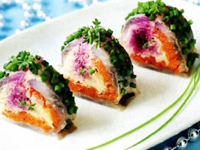 Всеми любимую селедку под шубой можно приготовить не только в виде салата, но и виде закуски. Она наверняка станет настоящим украшением праздничного стола.