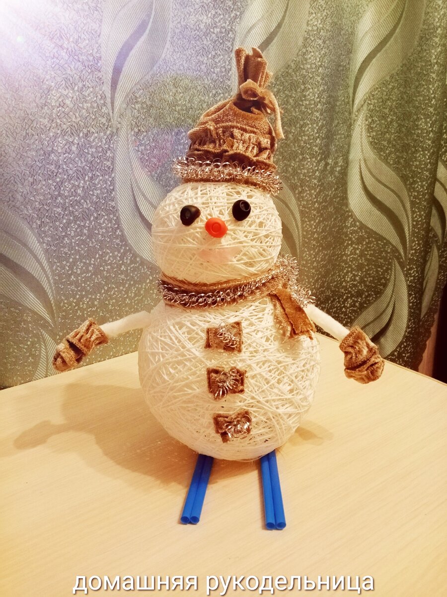 Снеговик готов. Можно с радостью нести его в школу или садик. Ваши дети вместе с вами могут приминать участие в изготовления такого снеговика. Пробуйте. Подписывайтесь на мой