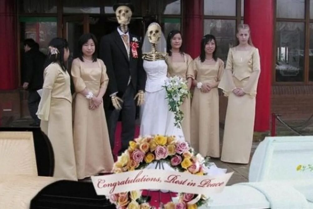 Однако недавно к семье обратились родственники неженатого мужчины, погибшего в автокатастрофе. Они заплатили 80 тысяч юаней (890 тысяч рублей) за «свадьбу призраков». Родителей покойной не смутило даже то, что при жизни их дочь была замужем за другим человеком. Они тайком вырыли скелет вместе с драгоценностями из могилы и устроили брачную церемонию. После нее останки «новобрачных» похоронили в одной могиле.