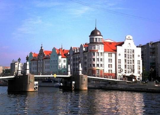 Одной из архитектурных достопримечательностей Калининграда является пешеходный разводной мост через реку Преголю, входящий в состав комплекса "Рыбной деревни". Открытие моста было приурочено к празднованию 750-летия города, в июле 2005 года. Основанием для трёхпролётного моста стали опоры разрушенного во время Второй мировой войны Кёнигсбергского