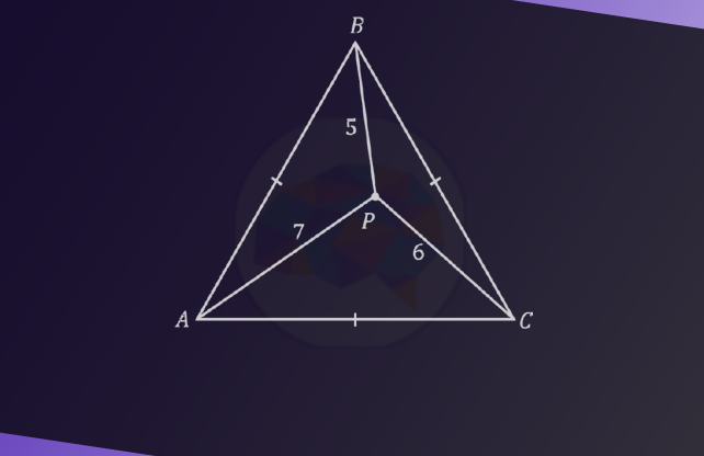Условие: Нам дан равносторонний треугольник, в котором выбрана точка так, что соответствующие отрезки равны 5, 6 и 7. Найдите площадь треугольника.