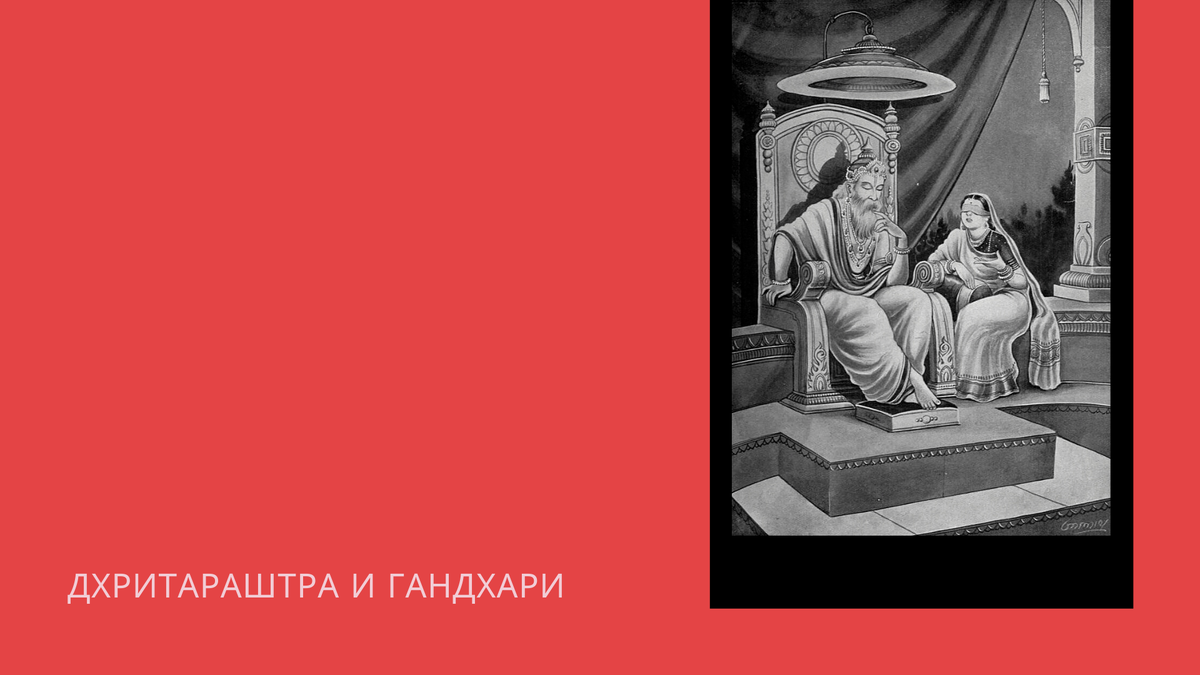 Когда мальчики выросли, на трон был помазан Панду, хотя сыном старшей вдовы Вичитравирьи был Дхритараштра. Его обошли из-за слепоты. Бхишма нашел для племянника невесту - царевну Гандхари, которая узнав про “особенность” мужа навсегда завязала себе глаза повязкой.