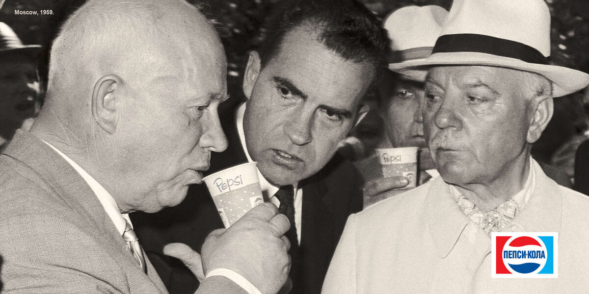 Хрущев попробовал оба варианта и сказал, что напиток из советской воды был куда вкуснее. Хотя на самом деле Никсон слукавил: газировка была одна и та же. Но этот момент засняли журналисты иностранных изданий, и уже на утро следующего дня по миру разлетелись снимки советского лидера со стаканчиком пепси в руках. Они были подписаны фразой «Хрущев хочет быть общительней» и слоганом PepsiCo тех лет — «Будь общительней. Пепси поможет» («Be Sociable. Have a Pepsi»). Так Никита Хрущев, сам того не ведая, стал лицом рекламной кампании PepsiCo.
