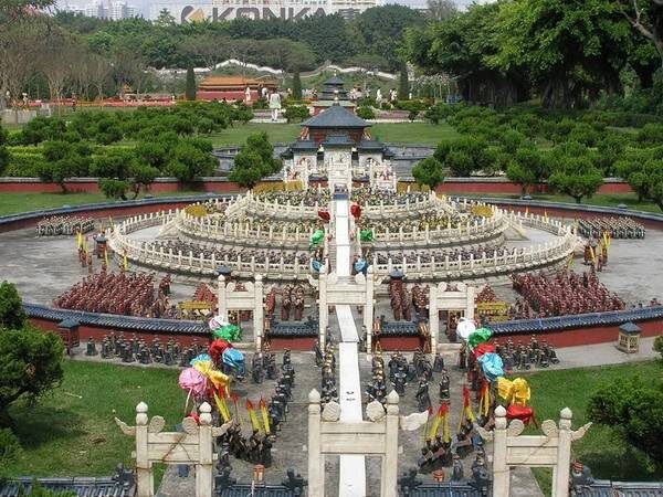 Тематический парк «Фольклорная деревня», или «Великолепный Китай», полностью оправдывает свои названия, так как представляет собой масштабный проект, отражающий все многообразие культуры китайских малых народностей, включая музыку, театр, литературу, архитектуру, живопись и другие специфические этнические элементы. Территория парка разделена на несколько частей, на