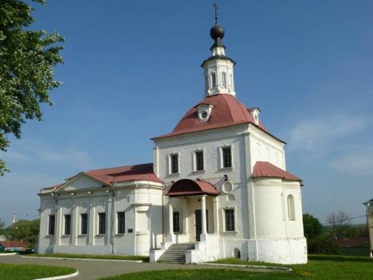 Соответственно, история этого храма началась, возможно, в XIV столетии, хотя точная дата его возведения неизвестна. К настоящему времени храм сохранился с множественными переделками. Так, в XVII веке к зданию была пристроена трапезная, к которой в начале XIX столетия были добавлены два придела – в честь святых бессребреников Космы и Дамиана и в честь Боголюбской иконы Божьей Матери. После реконструкции в 80-е годы XVIII века храм приобрел черты барочного стиля и оригинальные интерьерные украшения в виде колонн и скульптурных изображений.