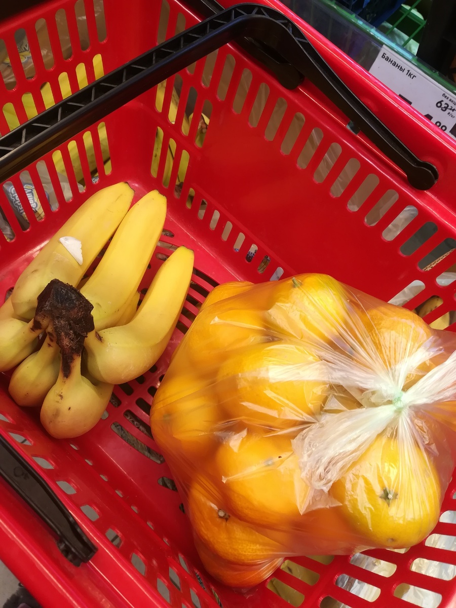 Конечно же себе по скидке я тоже купила, но не только мандаринки и бананы. Ещё купила молоко, паштет, сырную пасту, кофе, цикррий и огурчики.