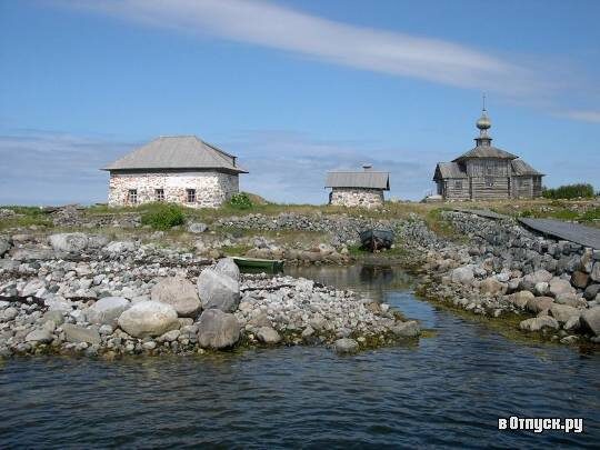 На территории острова располагался не только монастырский портовый, но и необходимый хозяйственный корпус, который стал местом надежного пристанища для всех путешествующих. Выстроенная из больших валунов гавань с небольшой пристанью, а также каменные палаты были возведены на этом острове еще во времена пребывания здесь игумена-святителя Филиппа – в течение 1548-1566 годов. До нашего времени хорошо сохранились валунный погреб, выстроенный в 19 столетии, и небольшая поварня. На прибрежных зонах острова находилось множество различных обетных, сделанных из дерева крестов, воздвижение которых было делом рук мореплавателей.
